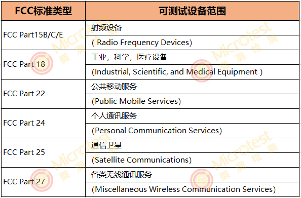 微測檢測獲得授權FCC標準包括: