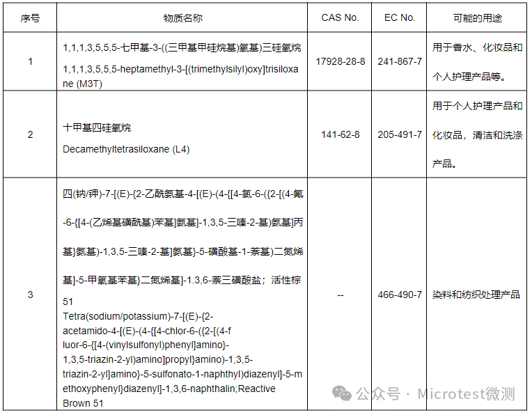 新增的三項高度關(guān)注物質(zhì)SVHC)信息如下: