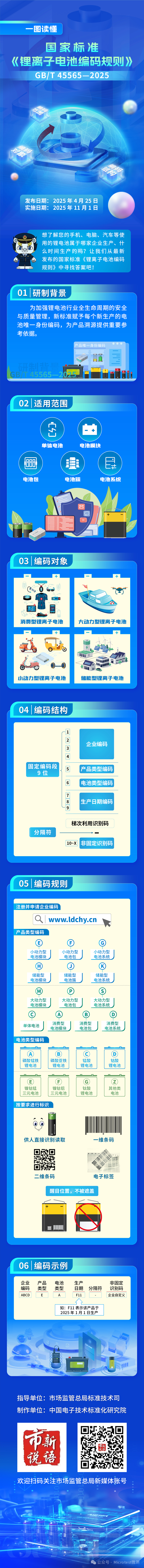 為強化鋰離子電池全生命周期的安全與質量管理,市場監管總局(國家標準委)近期批準發布《鋰離子電池編碼規則》(GB/T45565-2025),該標準將于2025年11月1日起正式實施。