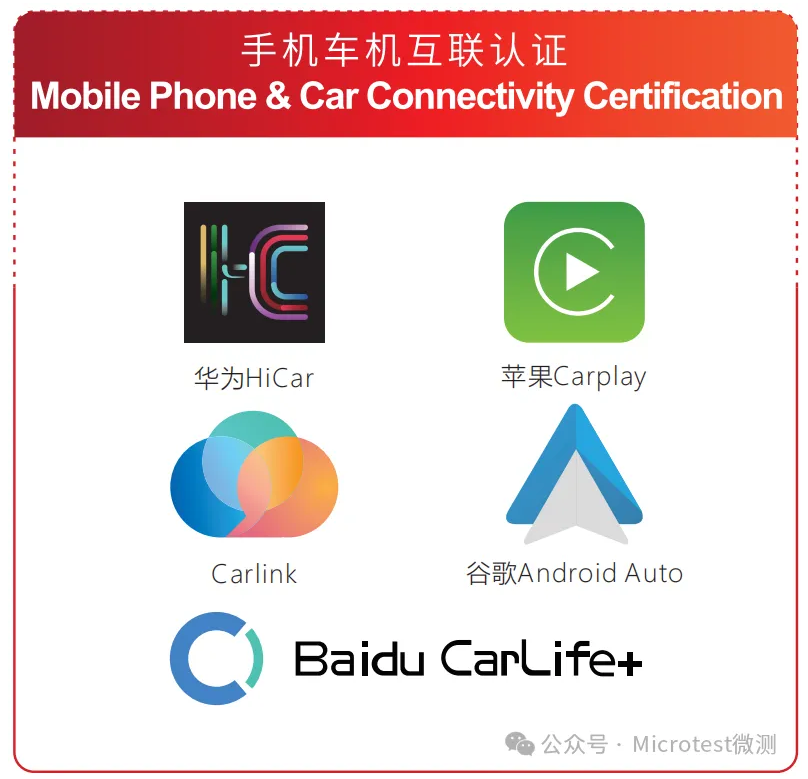 微測檢測自創立以來,已為二十余家車企、導航及100余家供應鏈企業順利完成了200+產品的蘋果CarPlay、ITU語言質量、谷歌Android Auto、百度CarLife、HUAWEI HiCar等檢測認證項目,積累了大量的車聯網檢測認證項目經驗,建立了豐富完善的車機互聯產業鏈的合作共生生態,為客戶帶來多維度服務保障。