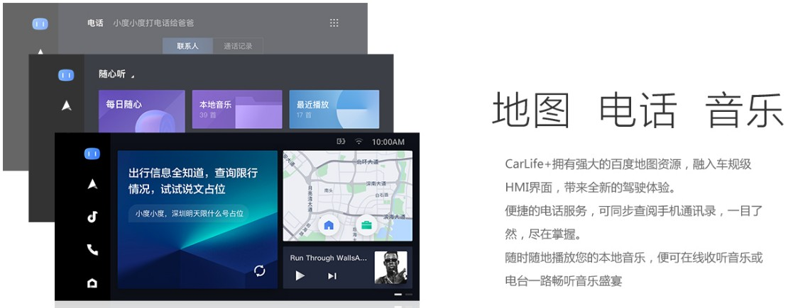 百度Carlife+是百度公司推出的一款手機車機智能互聯(lián)產(chǎn)品。只需在車內(nèi)連接手機,即可將CarLife匯集的車生活服務(wù)分享到車載屏幕上,享受駕駛中更安全便捷的車載體驗。