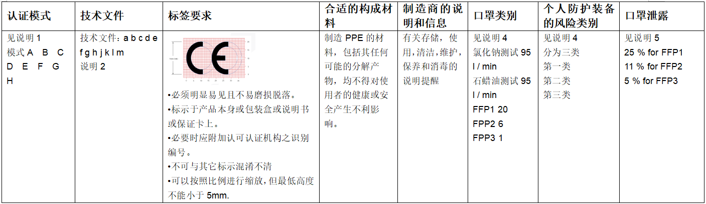 注:平板一次性口罩不在PPE指令認證范圍之內。