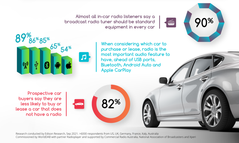 沙特立法,從2021年1月起,家用接收器、便攜式接收器和車載接收器必須配備 DAB+,而阿聯酋在2018 年發布了AM/FM/DAB+ 無線電接收器的標準規范USE.S 5201:2018,并規定從2020年起賣向該國的車輛具有DAB接收機的比例比例不低于50%,從2024年起賣向該國的車輛應100%具有DAB接收機。