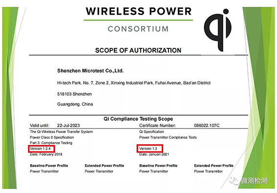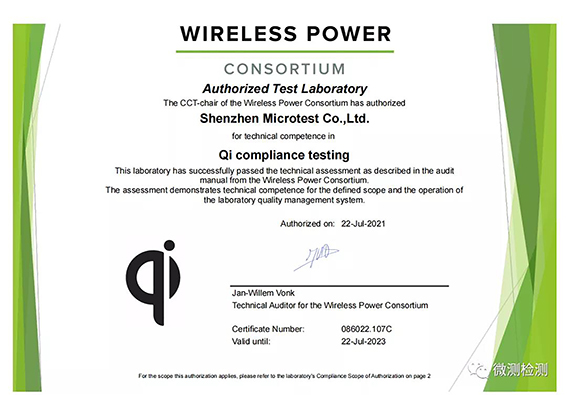 微測檢測是無線充電聯(lián)盟WPC授權(quán)實(shí)驗(yàn)室 編號:08608.C85,